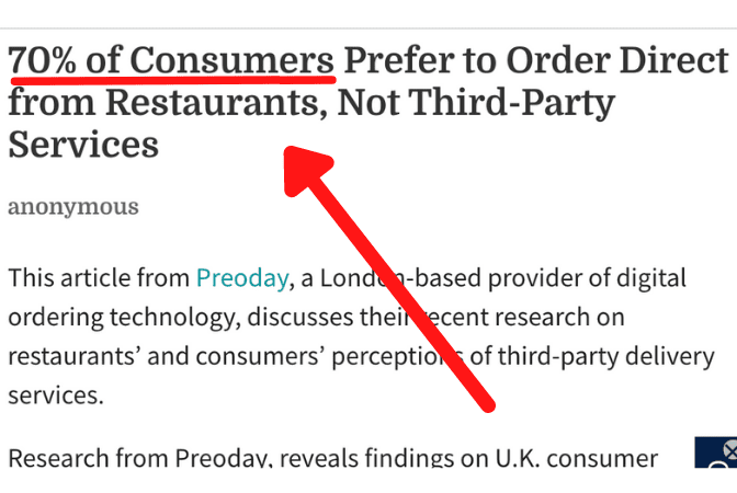 More than 70% of consumers like to order from a restaurant’s own app instead of 3rd party apps as they want the food chains to make maximum profits, not some far away corporation.