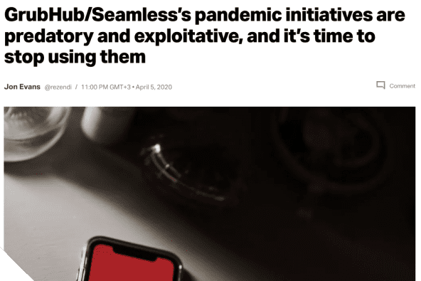 Big Tech Ordering Systems Like GrubHub & UberEats Are Bankrupting Small Restaurants.