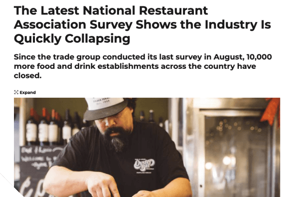 Hundreds of thousands of restaurants shut down because they could no longer compete.